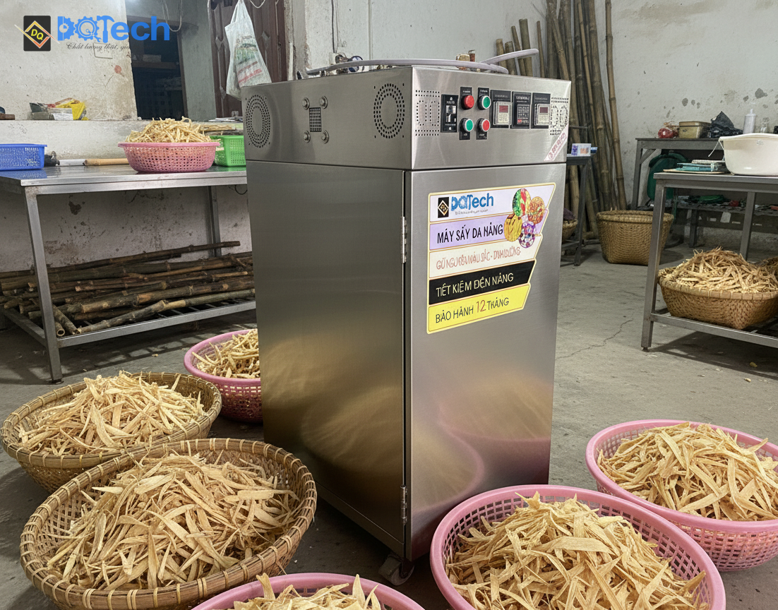 Nếu bạn đang tìm kiếm một thiết bị bền bỉ, dễ vệ sinh và tiết kiệm điện, máy sấy nông sản DQTech chính là cái tên hàng đầu. Được thiết kế dựa trên thực tế sản xuất tại Việt Nam, dòng máy này có những ưu điểm vượt trội: